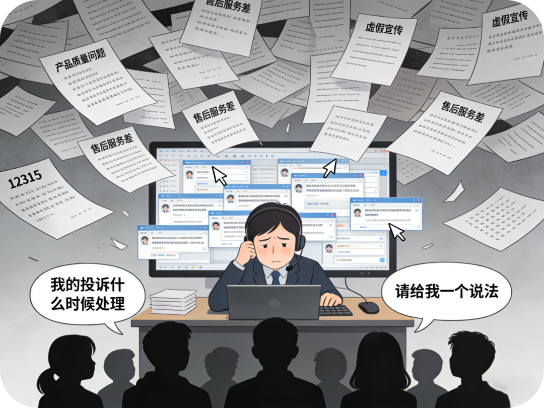 消费投诉涉及行业广、类型杂,人工需逐一甄别投诉内容、匹配对应监管部门,流程繁琐且易出错,导致处置周期拉长。