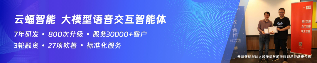 云蝠智能是一款 AI 原生的大模型语音智能体,我们为企业提供AICC大模型呼叫中心,在ChatBOT和CRM基础上提供包括语音智能体,产品能力包括了大模型语音外呼、智能呼入、网页实时语音交互 sdk 及 api。