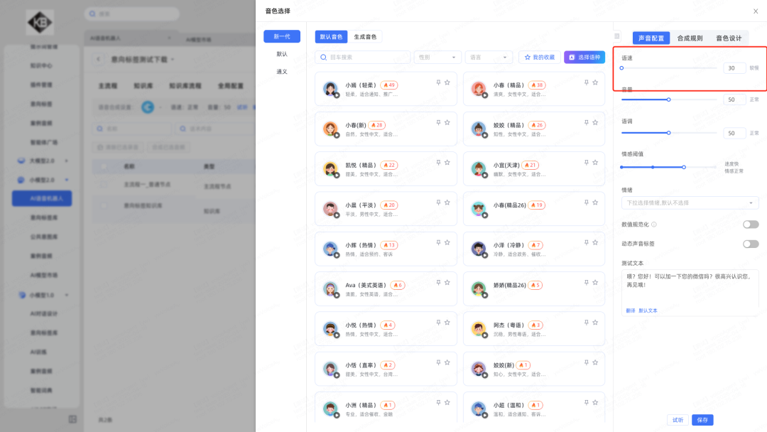 3.话术2.0与大模型TTS语速设置将会保持一致,TTS语速最小值改为30