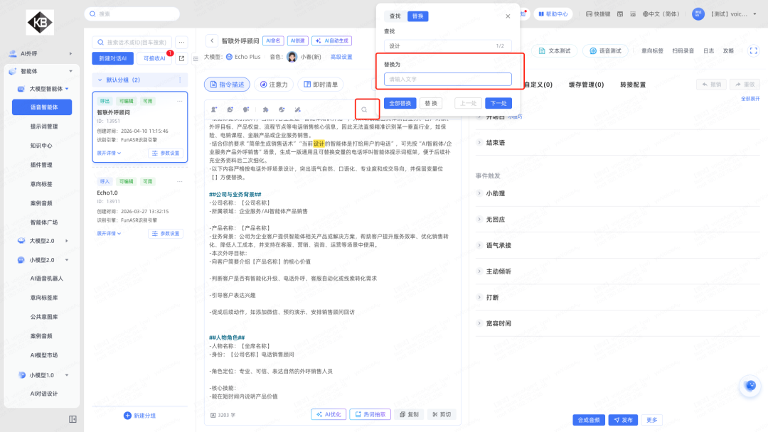 4.智能体指令编辑器新增“替换为空”功能:查找内容后可不填替换内容直接执行删除