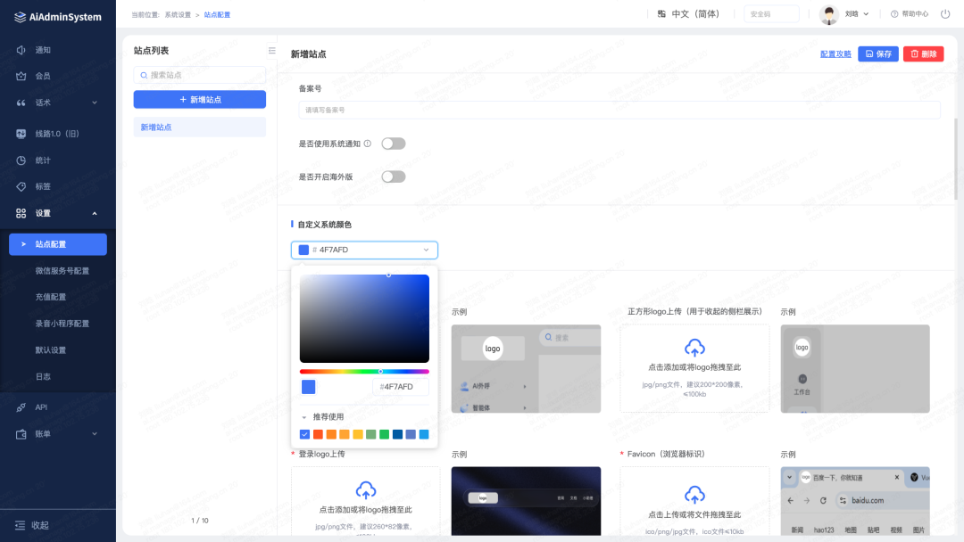 3.代理端增菜单风格及自定义主题色:新增“OEM站点配置主题色”,支持自定义系统颜色;支持针对终端展示开通第三种菜单风格(顶部菜单),可以在偏好设置支持切换菜单样式。
