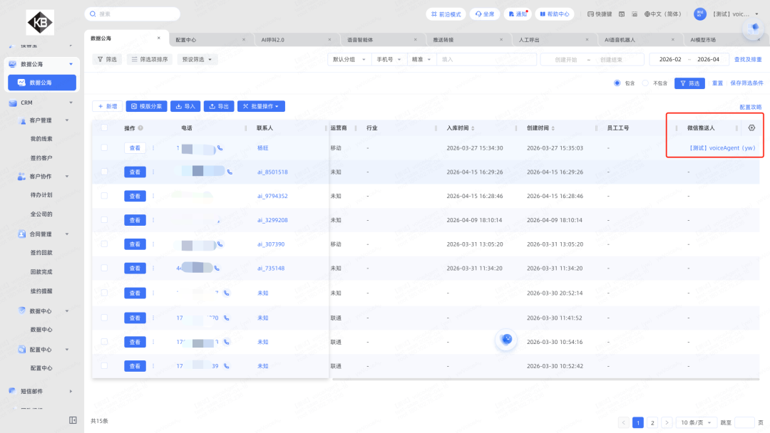 3.CRM数据公海微信推送人显示昵称:推送人后面增加微信昵称,格式:xxx(微信昵称)