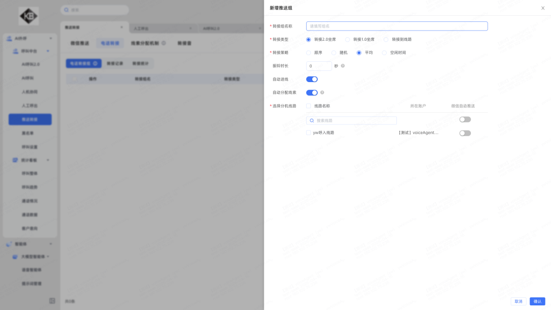4.坐席名称修改后同步显示:人工坐席修改名称后,转接组内也会同步更新,方便勾选时准确区分人员
