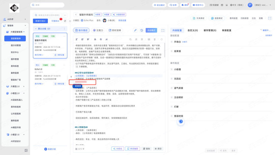 2.提示词编辑器优化:对“xx”“某某”等占位符进行红色高亮提醒(不区分大小写),方便客户处理话术细节内容
