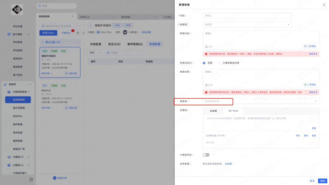 7.浏览器转接支持背景音:转接时播放背景音,接听后自动结束,弹屏和页面上均支持