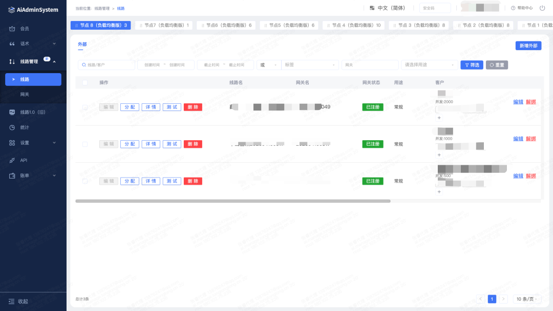 5.为简化线路删除和登记操作,删除网关时关联删除线路,删除线路需要正常验证